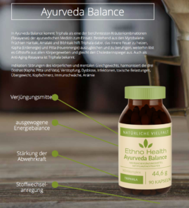 Mit wertvollen Pflanzenextrakten in einer besonderen Ausgewogenheit Ayurveda-Balance von Ethno-Health kann das innere Gleichgewicht auf wunderbare Weise gestärkt werden. Hier nähere Infos zu Ayurveda-Balance: