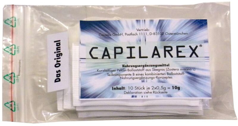 Capilarex ist ein nach speziellem Verfahren isolierter Pektin-Ballaststoff aus dem Seegras (Zostera marina L) mit hohem natürlichen Gehalt an kurzkettigen Pektinketten (0,54g/1g).