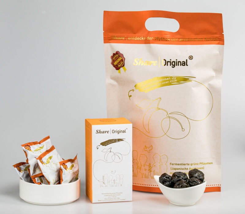 Die Share-Pflaume ist eigentlich eine Aprikosenart. Sie ist eine NATÜRLICHE FRUCHT mit essentiellen Kräutern. Die kleine, süß-säuerlich schmeckende, fermentierte Share-Original®-Pflaume ist ein gesunder Snack für dein Wohlbefinden. Sie ist besonders wertvoll, denn sie bietet uns alle Vorzüge der Fermentierung und der Kräuterummantelung.