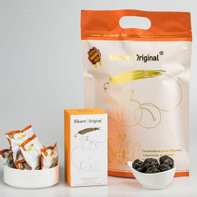 Bewertet mit 5.00 von 524,00 € – 237,00 €Die Share-Pflaume ist eigentlich eine Aprikosenart. Sie ist eine natürliche Frucht mit essentiellen Kräutern. Die kleine, süß-säuerlich schmeckende, fermentierte Share-Original®-Pflaume ist ein gesunder Snack für dein Wohlbefinden. – Jetzt portofrei bestellen!