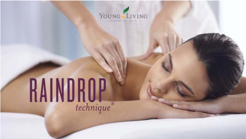Die Raindrop®-Behandlung ist eine Technik, die speziell von Gary Young entwickelt wurde. Sie wird sowohl an den Füßen als auch an der gesamten Wirbelsäule, dem Rücken und dem Ansatz am Hinterkopf ausgeübt. Sie ist ein Wechselspiel aus federleichten und intensiveren Berührungen. Es werden hochwertige ätherische Öle der Firma YoungLiving aus etwas Abstand auf die Wirbelsäule geträufelt, um die elektromagnetischen Felder des Rückens und der Öle zusammen zu bringen. Bedeutet, dass sich die Schwingungsfrequenzen beider aufeinander einstimmen.